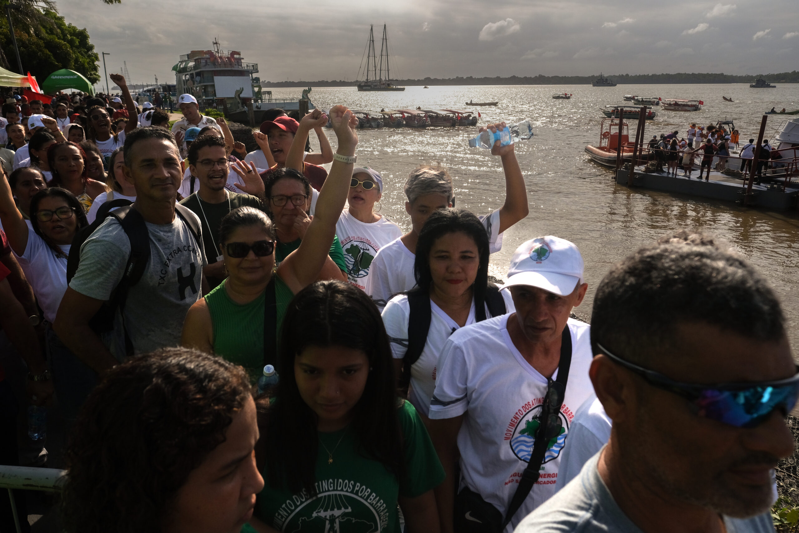 Durante duas horas, o cortejo fluvial percorreu o trajeto entre a Universidade Federal do Pará (UFPA) e a Vila da Barca, bairro de palafitas que simboliza as contradições socioambientais da cidade-sede da conferência. O som dos motores se misturava aos gritos de ordem em alguns barcos, transformando o rio em palco e manifesto aos olhos do mundo que estão voltados à COP30.