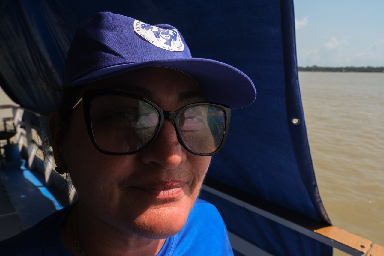 Entre as embarcações, também navegava Vlademira Pimentel Batista, do município de Alenquer (PA), militante do Movimento dos Pescadores e Pescadoras Artesanais do Brasil (MPP). Em um dos barcos, ela trouxe para o debate o drama dos pescadores e pescadoras do Baixo Amazonas.