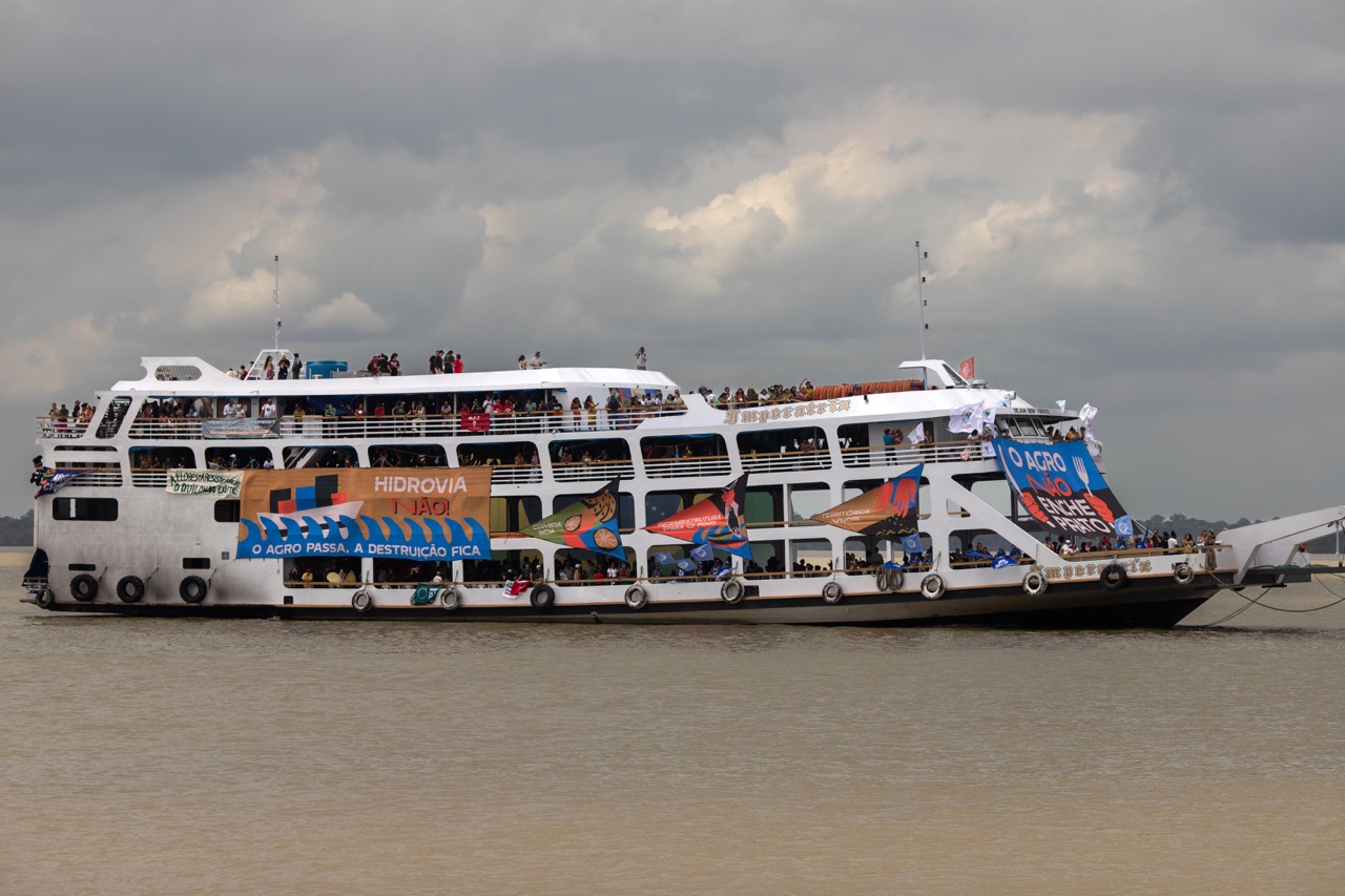Ato fluvial reuniu indígenas, pescadores e movimentos populares de 60 países em protesto contra o avanço do agronegócio, da mineração e de megaprojetos como a Ferrogrão e a exploração de petróleo na Amazônia